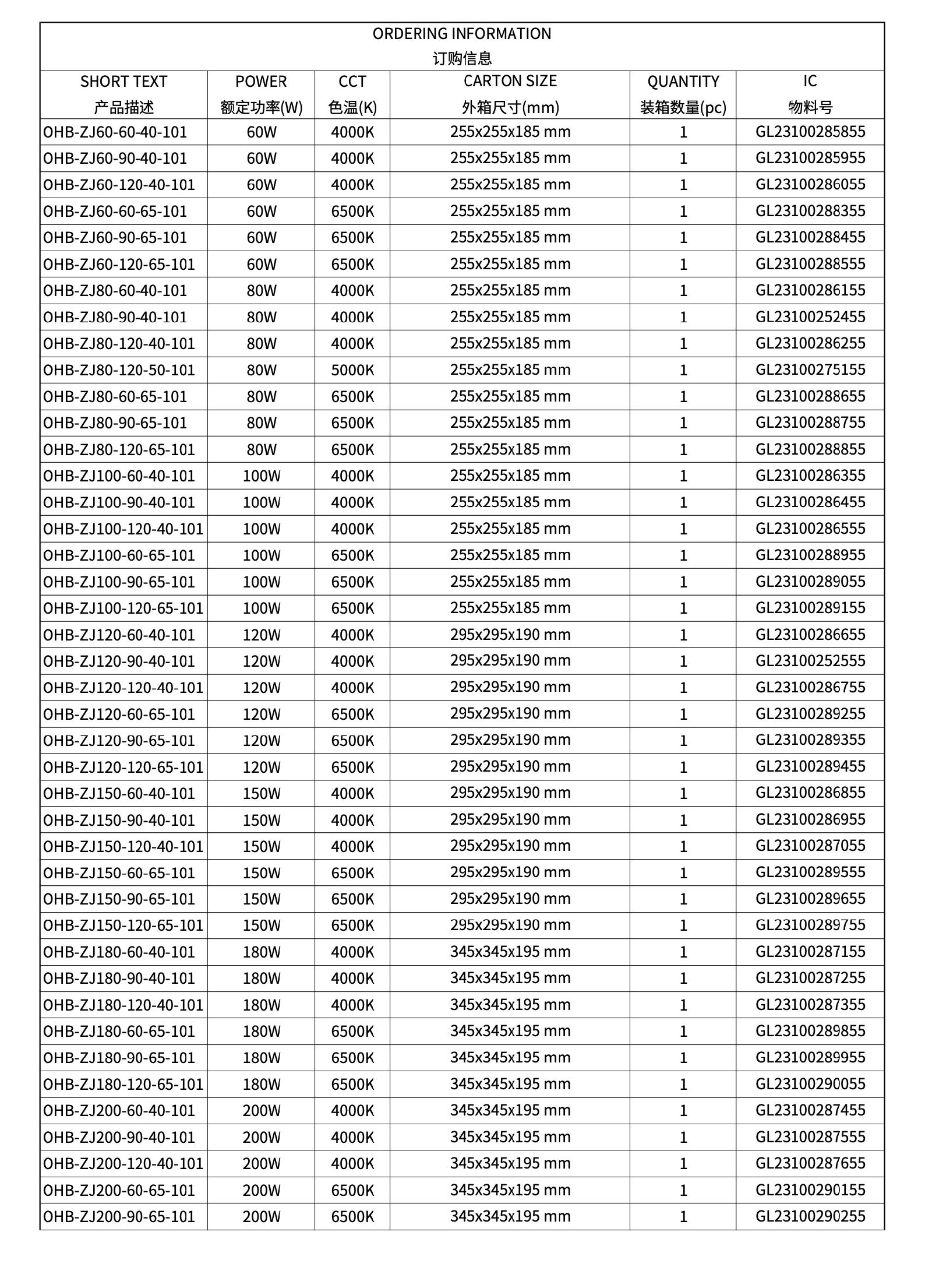 所 在 地: 上海寶山區 更新日期: 2025-02-05 詳細信息| 詢價留言品牌:歐司朗 加工定制:否 型號:OHB-ZJ 100W 光源類型:LED 光源功率:60/80/100/120/150/180/200/220 W 電壓:100-277 V 燈罩型式:敞開式 主要適用范圍:倉庫/物流中心/廠房/展覽中心/公 防水等級:IP65 光束角:60°/90°/120° 顯色性:80 光通量:150Lm/W 色溫:4000K 5000K 5700K 6500K 顯色性:80 光通量:150Lm/W -